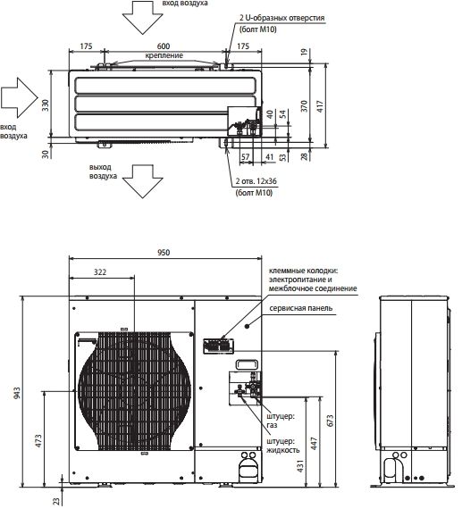 Наружный блок содержит компрессор, вентилятор и конденсатор. Его устанавливают на улице: на фасаде или кровле. Вокруг аппарата должно оставаться свободное пространство для доступа воздуха. С помощью компрессора хладагент перемещается по медным трубопроводам. Он охлаждается в конденсаторе, который обдувает вентилятор.