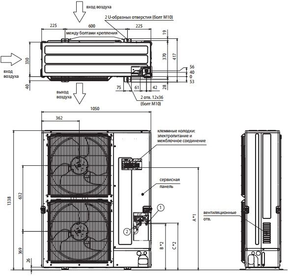 - Нижняя крышка корпуса может быть переставлена для организации входа воздуха снизу.