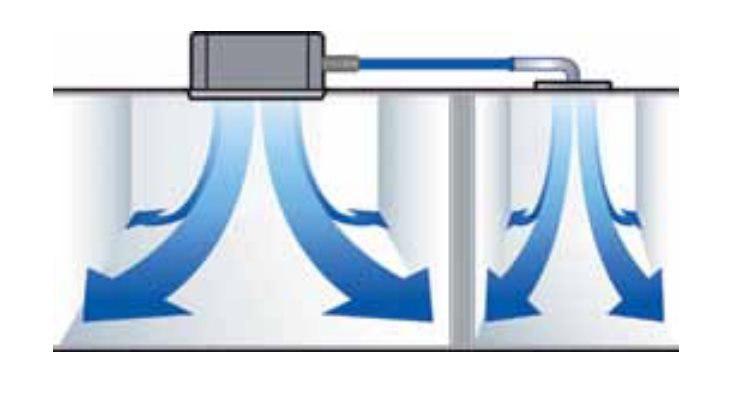 - Распределение воздуха по всем направлениям (360°). Кондиционированный воздух равномерно распределяется по всем углам комнаты