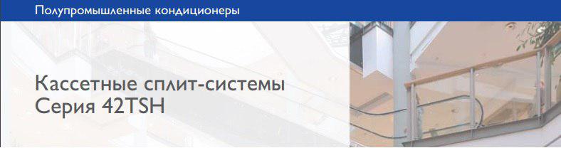 - Кассетные блоки 42TSH 012-018 (3-5 кВт) размещаются в стандартной ячейке подвесного потолка 600х600 мм.