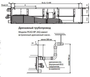 - Модели PEAD-RP JAQ имеют встроенный дренажный насос (изображены на рисунке). В моделях PEAD-RP JALQ дренажного насоса нет.