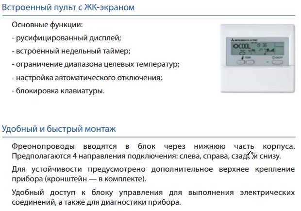 - Пульт управления с жидкокристаллическим дисплеем встроен в корпус блока.