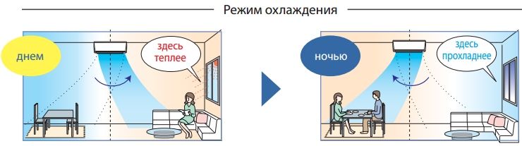 - Датчик «3D I-SEE» создает трехмерную температурную картину помещения и находит в нем положение людей. На этих данных базируются режимы автоматического отклонения или наведения воздушного потока, а также режим энергосбережения.