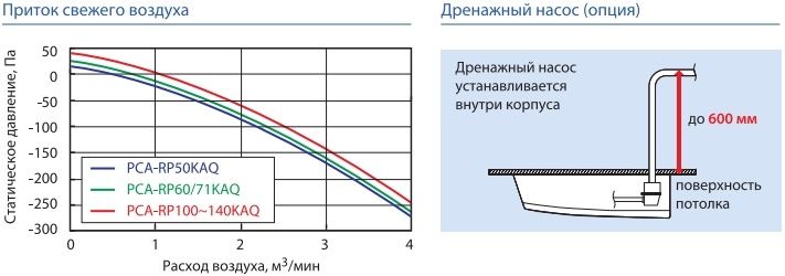 - Предусмотрены опциональные дренажные насосы, которые устанавливаются внутри корпуса прибора. Высота подъема воды до 600 мм относительно верхней поверхности блока.