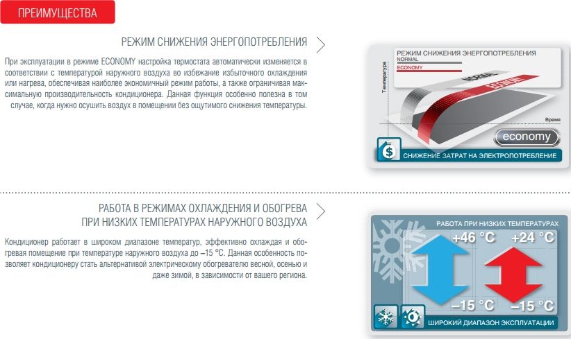 Режим экономичного электропотребления. При эксплуатации в режиме экономии кондиционер работает с пониженным энергопотреблением, что также позволяет эффективно осушить воздух в помещении. При этом регулируется максимальный рабочий ток.