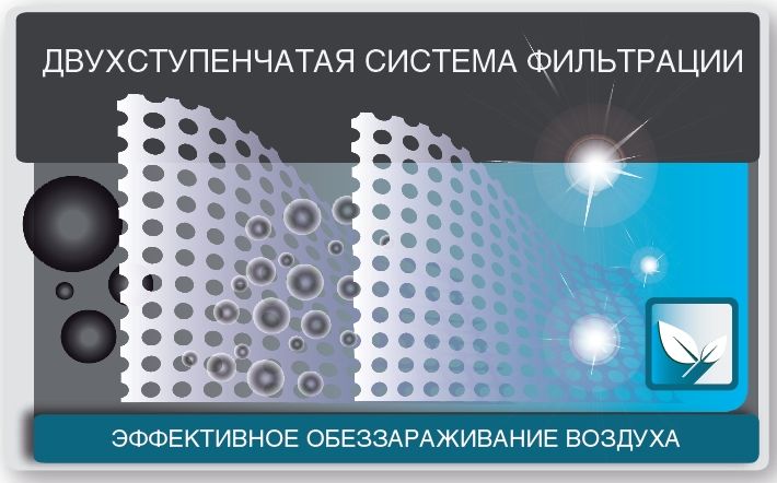 Отдельного внимания заслуживает двухступенчатая система фильтрации, состоящая из фильтров грубой очистки и блока плазменной очистки. Благодаря технологии автоматической очистки фильтров нет необходимости мыть фильтры самостоятельно.