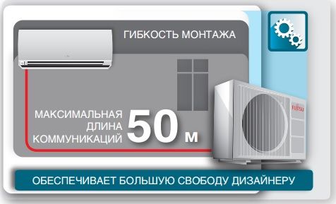 ГИБКОСТЬ МОНТАЖА Максимальная длина фреонопровода сплит-систем серии Standard составляет от 25 до 50 м. Максимальный перепад высот между наружным и внутренним блоком — от 20 до 30 м. Это позволяет создать комфортный микроклимат в помещениях, значительно удаленных от наружной стены или крыши, как по горизонтали, так и по вертикали. И обеспечивает большую свободу дизайнеру в выборе места размещения внутреннего блока внутри дома.