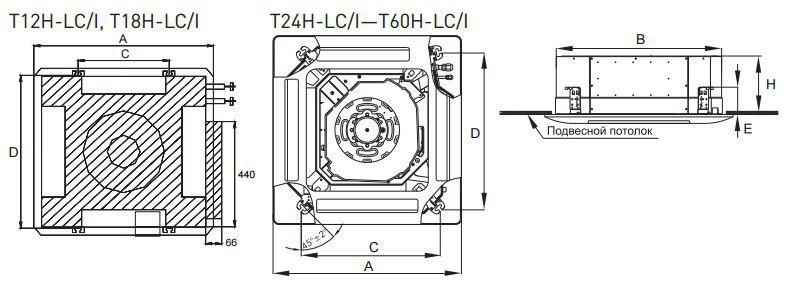 Блоки устанавливаются в подвесной потолок и обеспечивают равномерное охлаждение/обогрев помещения за счет подачи воздуха в четырех направлениях.