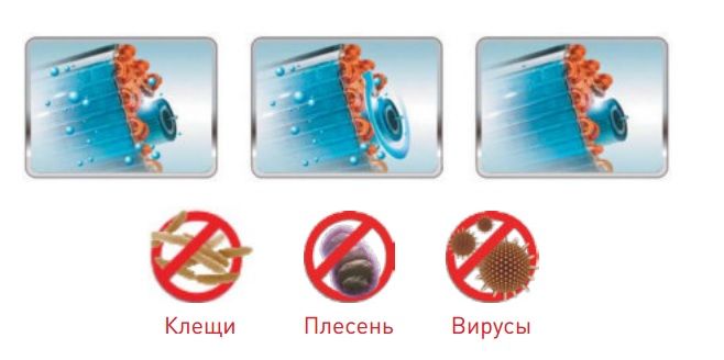После выключения кондиционера вентилятор внутреннего блока продолжает свою работу в течение нескольких минут. В процессе осушения удаляется влага, которая может стать причиной образования бактерий и плесени. Благодаря функции автоматической очистки кондиционер остается чистым после каждого сеанса работы.