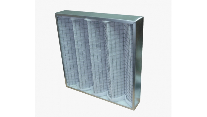| Конструкция фильтра | Фильтр ФВКАС-5 состоит из рамки, фильтрующего материала, уложенного в рамку в виде гофр, фиксация материала в рамке при помощи вертикальных спиц, без опорной сетки. | ||